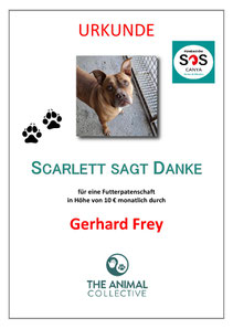 Klicken Sie einfach die Bilder der Patenschaftsurkunden an, dann gelangen Sie zu den einzelnen Patenschaftsprojekten für Tierschutzorganisationen in Deutschland, Bulgarien, Polen und Spanien.