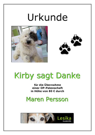 Wir konnten durch Ihre Unterstützung 270 € für Kirbys Operationen auszahlen.
