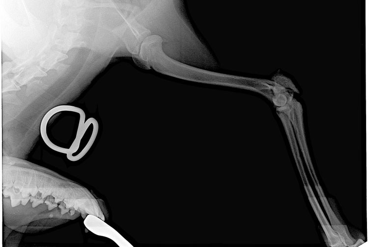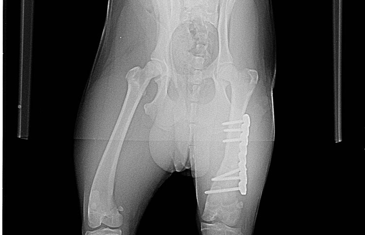 Beim einem zweiten Röntgen wurde dann aber leider eine Fraktur des Oberschenkelknochens der Hinterbeine festgestellt.