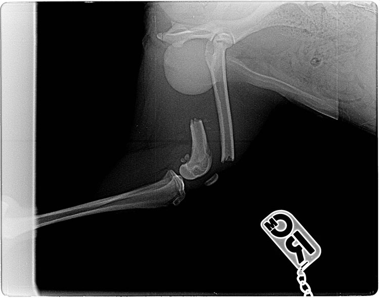 Selbstverständlich wurde das Vorderbein sofort geröntgt und glücklicherweise war das Bein nicht gebrochen.