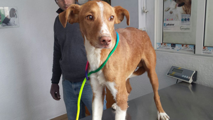 Dies war der Zeitpunkt, an dem die Mitarbeiter von ProPeludos ihn mitgenommen haben. Sie brachten ihn zu einem Tierarzt, der seine Bisswunden behandelte.