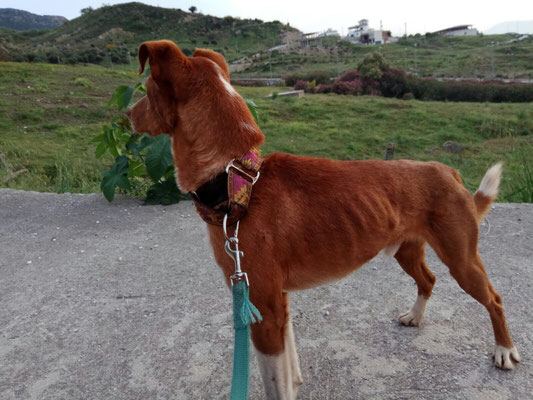Er bekam nur wenig zu fressen, so dass er sehr viel Gewicht verloren hat.