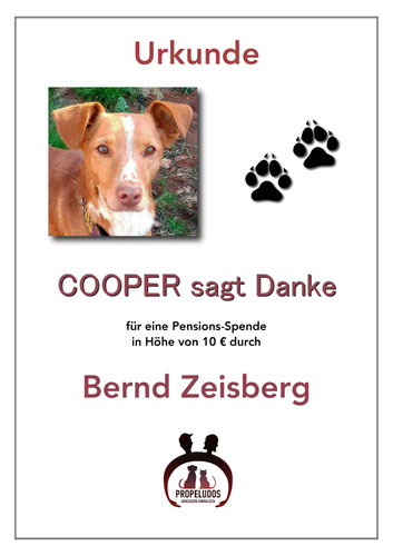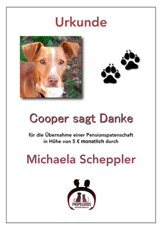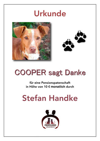 hat, überträgt nun seine Patenschaft auf Cooper. Denn alle Welpen haben glücklicherweise schnell ein eigenes Zuhause in Spanien gefunden.