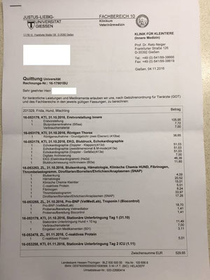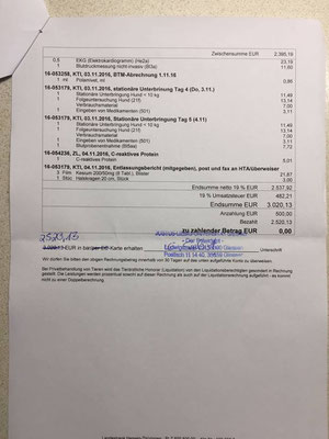Die Kosten für die Operation haben 3.020 € betragen. Für die jetzige Nachuntersuchung fallen nochmals rund 300 € an.