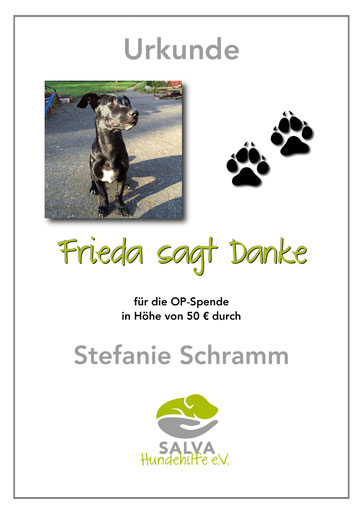 "Frieda SOLL leben" hatten wir als Überschrift für unser SOS-Tierschutzprojekt 44, das wir für den SALVA Hundehilfe e.V. eingestellt haben, gewählt. Jetzt können wir dies ändern in "Frieda WIRD leben".