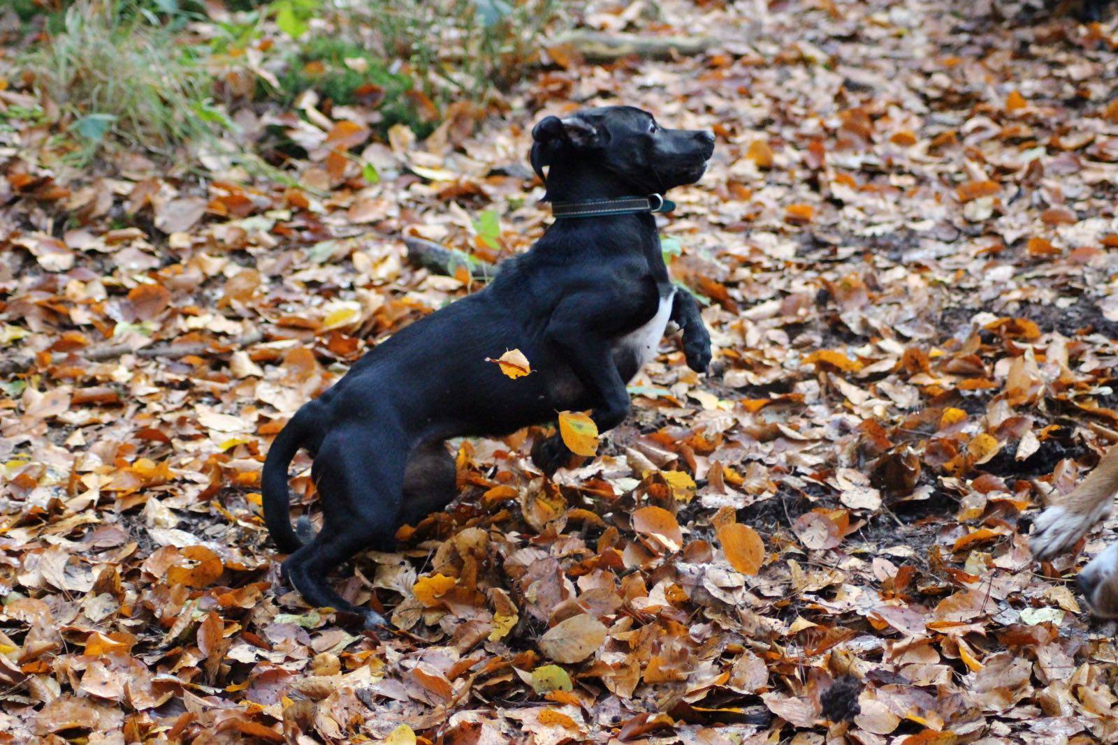 Dann kann sie toben und spielen wie Hunde in ihrem Alter dies tun.