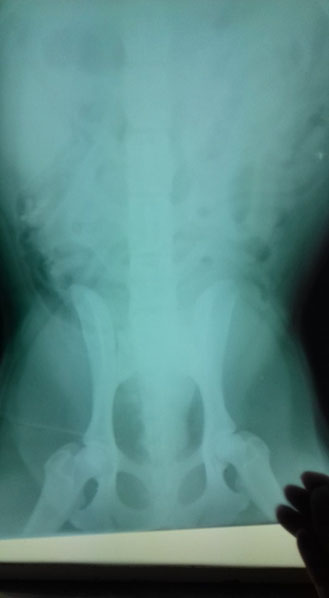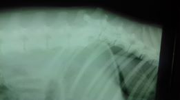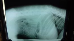 Gott sei Dank ist der Bruch seiner Wirbelsäule nicht wie bei Dea verschoben, so dass Hoffnung besteht, dass er seine Hinterläufe wird wieder ein wenig einsetzen können. Dies gelang bereits bei