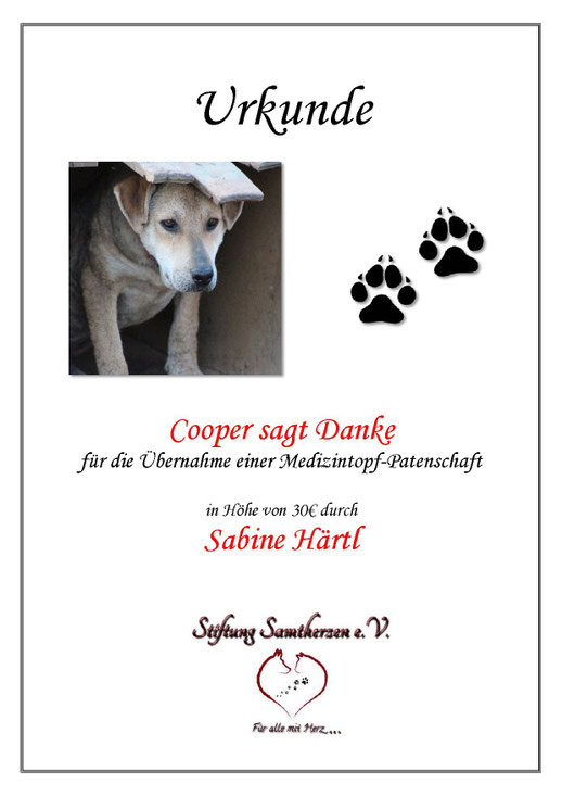 Betreff: Medizintopf-Patenschaft für ...