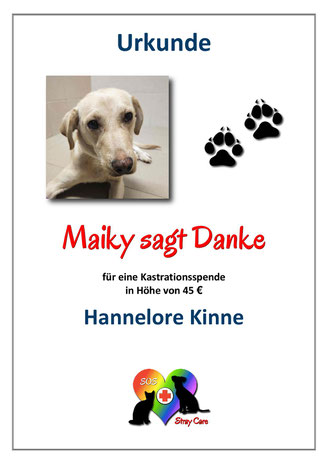 Nachdem wir die direkte Zusammenarbeit mit ausländischen Tierschützern über Verträge mehrfach neu geregelt und die zweckgebundene Mittelverwendung - wie von den Finanzbehörden gefordert -