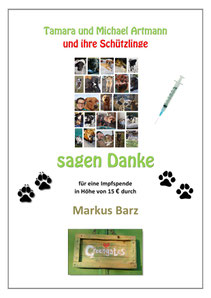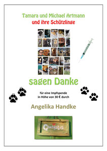 Wer möchte Tamara und Michael Artmann dabei unterstützen, ihren Schützlingen über unser Patenschaftsprojekt 113 die dringend benötigte medizinische Versorgung zu ermöglichen und die Impfkosten in