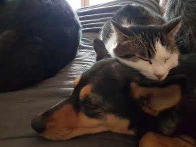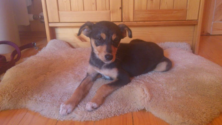 Hana kam ziemlich am Anfang unserer Reise zu uns, als wir für 1 1/2 Jahre in Albanien in einem Kloster gearbeitet und gelebt haben. An besagtem Tag habe ich eine Führung für einen Journalisten über das Gelände und zur angrenzenden Kirche gemacht und da kam sie auf mich zugerannt. Gerade mal etwa sieben Wochen alt, ganz verhungert und verfloht, ausgesetzt vor der Kirche. Mehr Klischee geht eigentlich kaum. Ich habe sie erst mal mit Futter und Wasser versorgt, um später noch mal nach ihr zu schauen. Vielleicht kam sie ja auch nur vom Nachbargrundstück und gehörte jemandem. Drei Stunden später war sie noch immer da und im Oktober kann es nachts schon ganz schön kalt werden in Albanien. Nach Rücksprache mit Schwester Christina, die das Kloster leitet, haben wir die Kleine dann reingeholt, gefüttert, gebadet und entfloht. Hana ist in einem Kloster aufgewachsen und ist noch heute positiv auf Habits (Ordenstracht) geprägt. Wann immer sie eine Nonne sieht, freut sie sich wie verrückt und will unbedingt "Hallo" sagen.