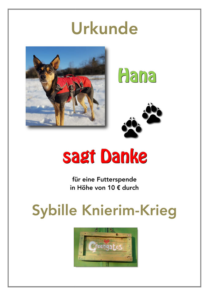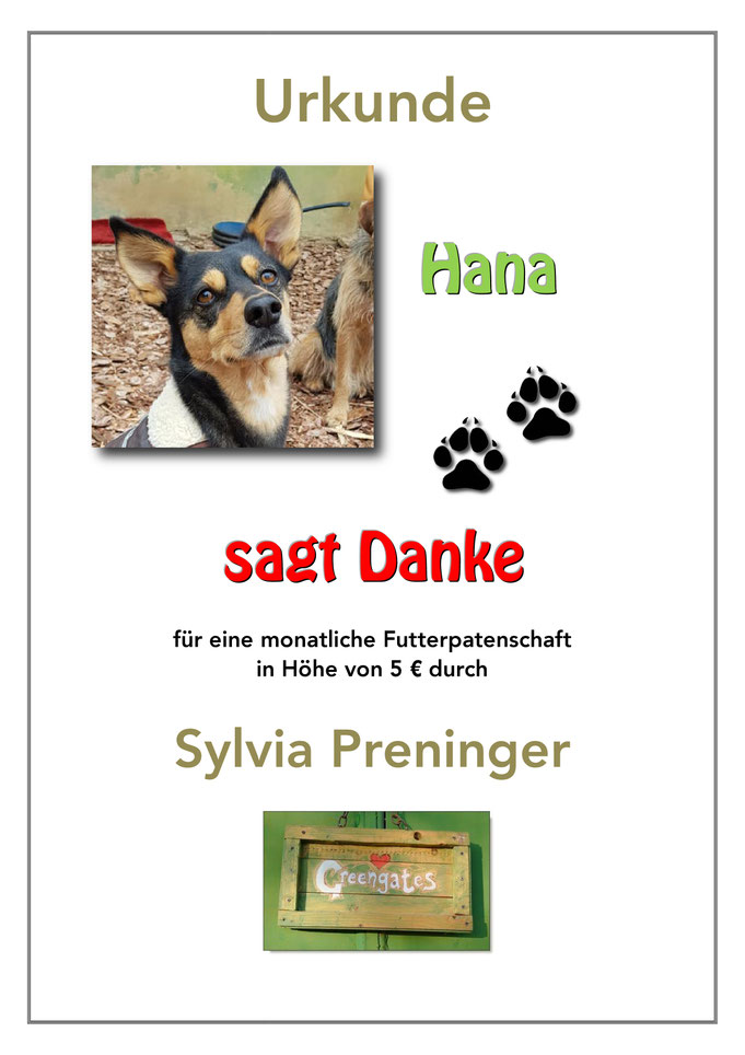 Hana fand im Juli 2021 ihre Futterteilpatin.