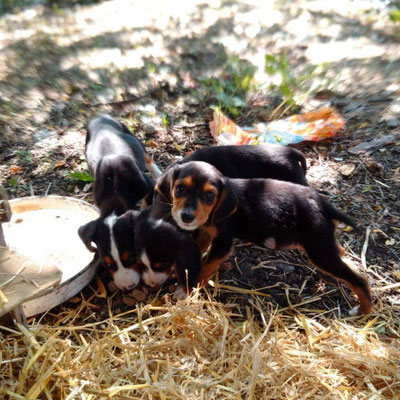 Alle fünf waren völlig abgemagert und verfloht. Der Nachbar wollte sie uns nicht überlassen, also haben wir sie über die nächsten drei Monate vor Ort versorgt. Eine Hütte, sauberes Stroh, Wasser,