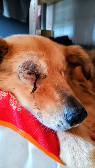 Sein Auge musste leider entfernt werden.