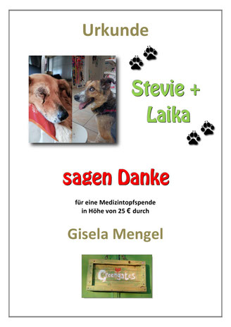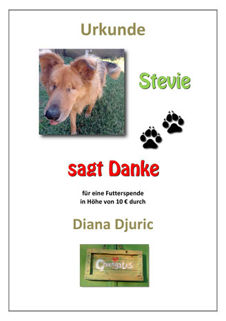 Herzlichen Dank an seine langjährige Patin Margit Egler, die aus persönlichen Gründen die Patenschaft leider nicht weiterführen kann. Dank zweier Futterspenden ist Stevie bis