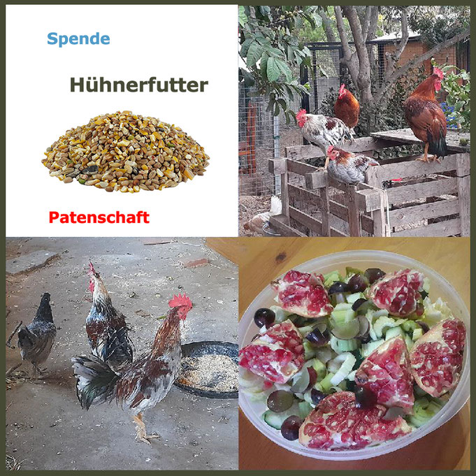 Neben den individuellen Patenschaften für Louisa und Elsa sowie die Hähne Karl Jung und Schopenhauer freut sich die gesamte Hühnerschar über jede allgemeine Futterspende! Ob Körnchen, Liebe oder ein kleiner Beitrag – jede Unterstützung hilft, damit Pamelas gefiederten Freunde satt und zufrieden durchs Leben scharren können.