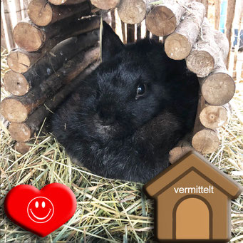 Mit anderen Hasen kuschelt sie eher weniger, aber sie tolerieren sich gegenseitig.