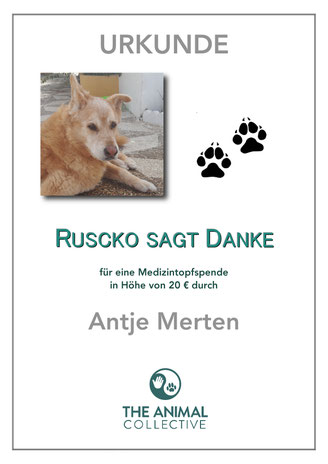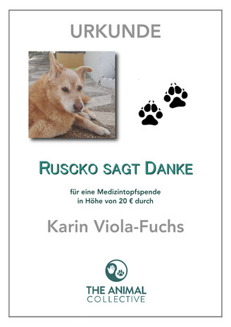 Wie Karin so lieb schrieb: "Ruschko hat so viele Paten. Vielleicht kann der ein oder Andere aushelfen. Ich fang schon mal mit 20 Euro an. Gute Besserung mein Hübscher." Ihrem Aufruf folgte Rusckos Patin Antje!