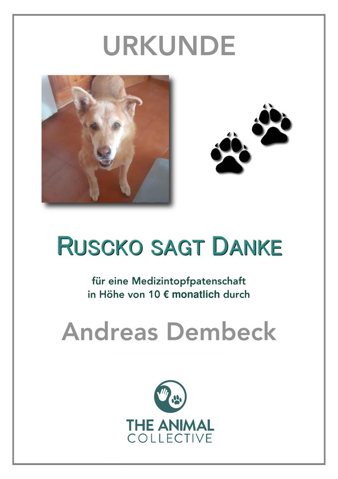 Ruscko aufgrund seiner eigenen Krankengeschichte und seines hohen Alters von über 13 Jahre nicht vermittelbar.