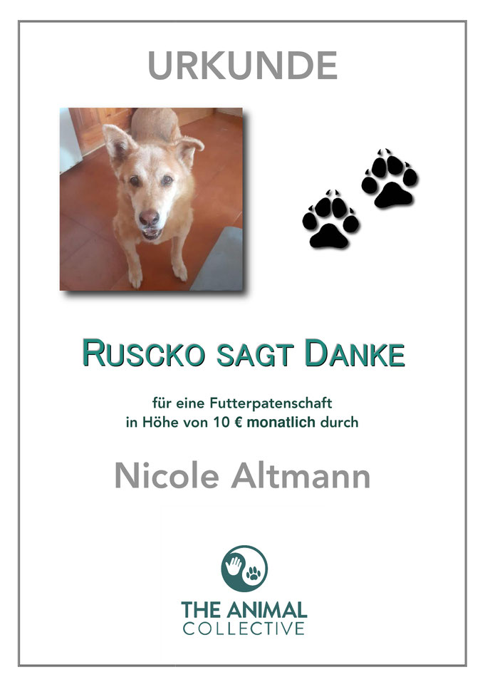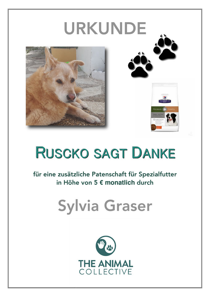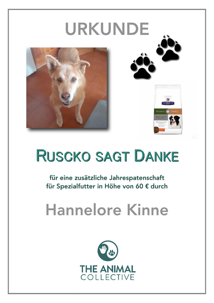 Ab November 2021 wird Ruscko mit zusätzlichen Futterpatenschaften versorgt.