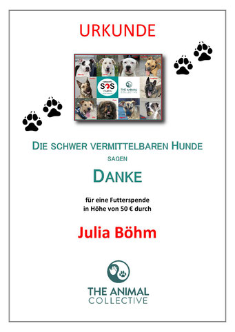 Ein herzliches Dankeschön geht an Julia Böhm, die die noch unversorgten Hunde unseres Patenschaftsprojektes 131 mit einer allgemeinen Futterspende unterstützt!