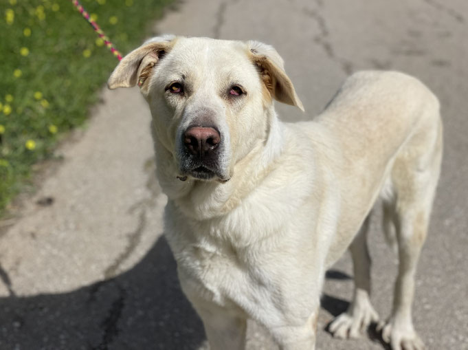 Dama kam im April 2023 im Alter von etwa 3,5 Jahren ins Tierheim Los Barrios, nachdem sie auf der Straße gefunden wurde.