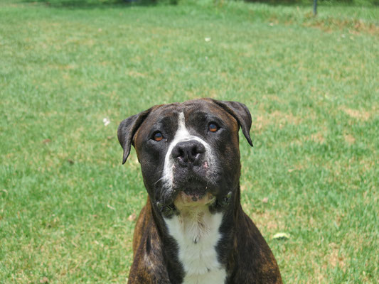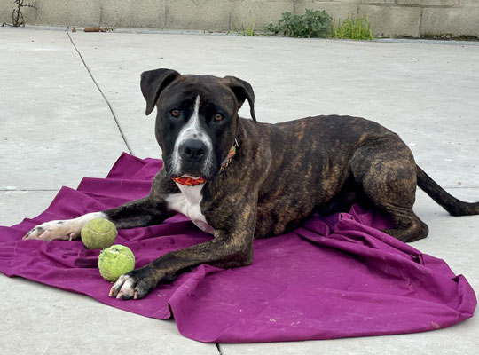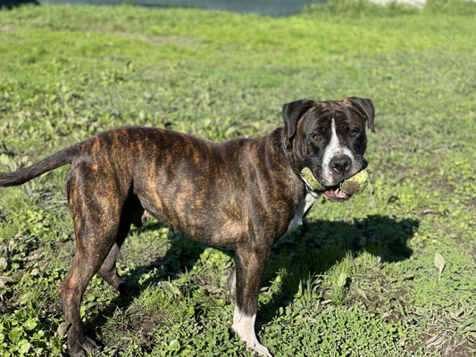 Dieser liebenswerte, verspielte Hund verdient eine Familie, die ihm endlich die Freiheit und Zuneigung schenkt, nach der er sich so lange gesehnt hat. Aufgrund seiner Rasse gehört er zu den 'potenziell gefährlichen Hunden', hinzukommt seine Körpergröße von 65 cm- beides Kriterien, die eine Vermittlung besonders schwer machen.