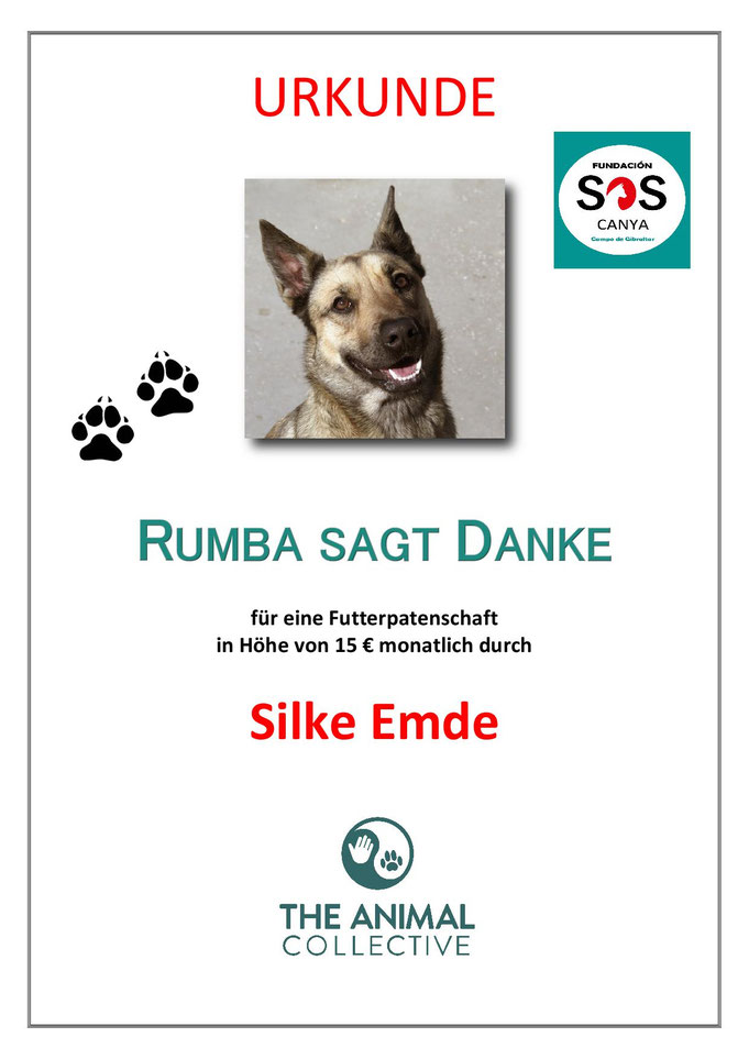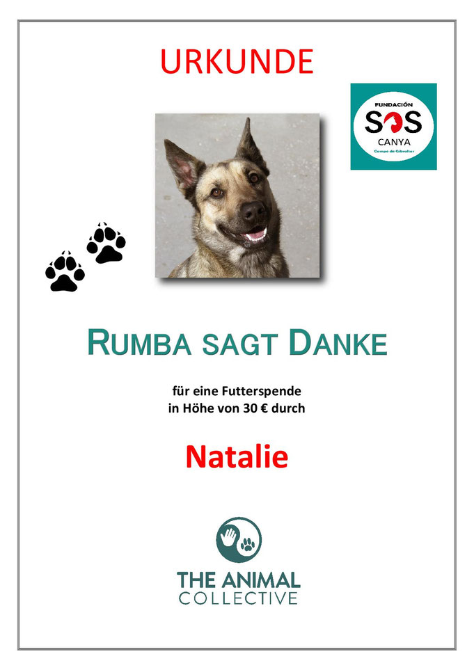 Rumba ist von Juni bis August 2025 über eine Futterspende versorgt.