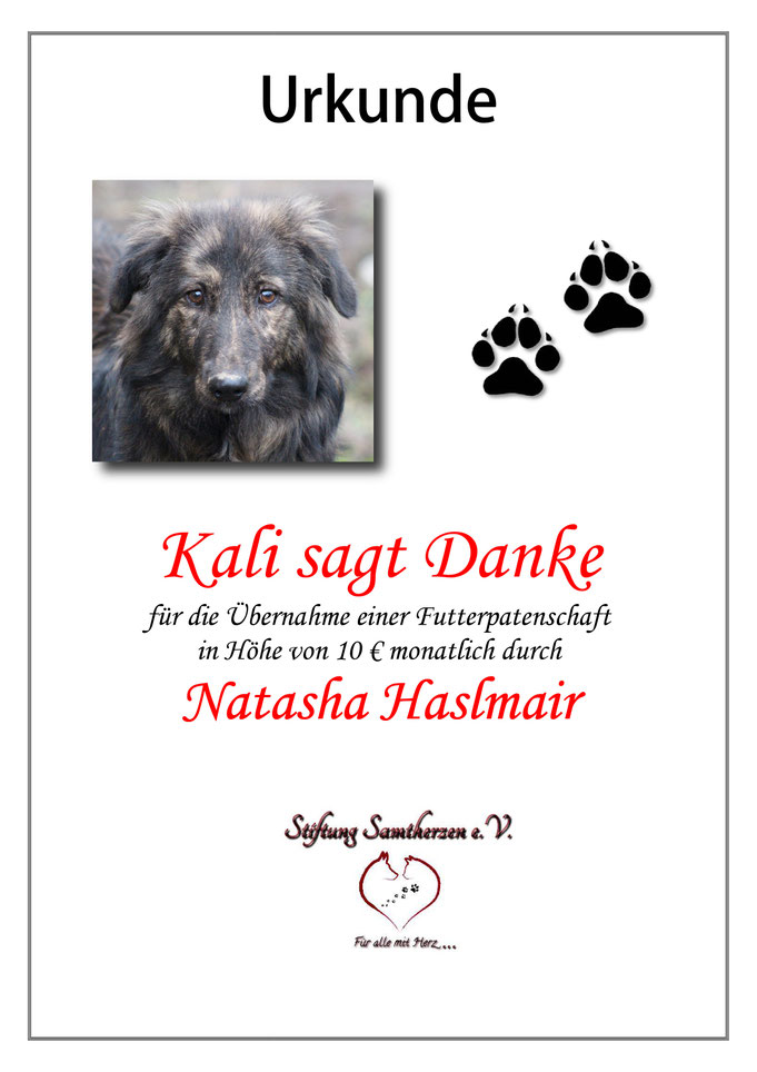Kali fand im Dezember 2018 ihre Futterpatin.