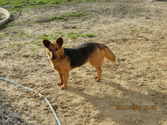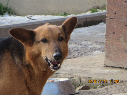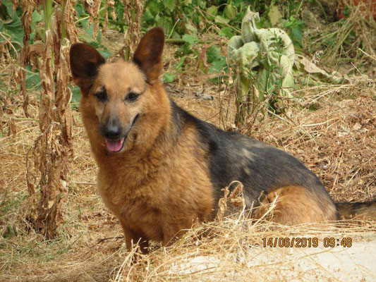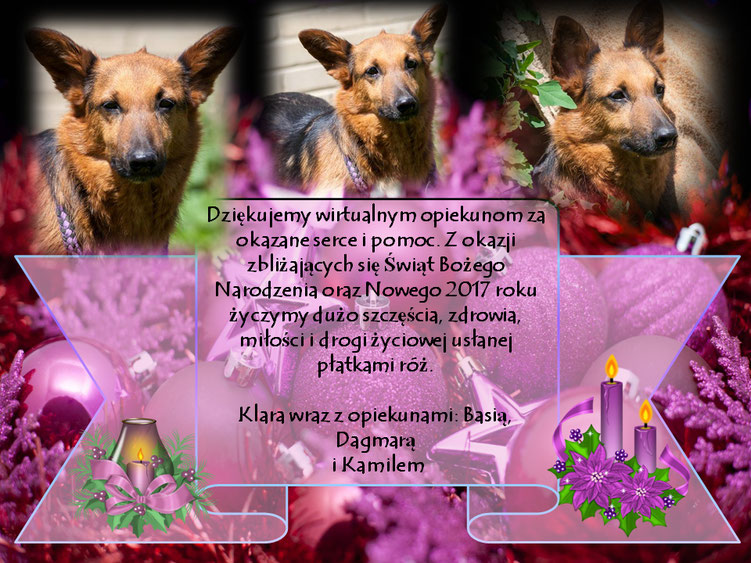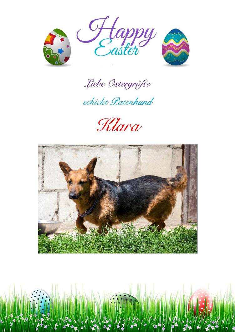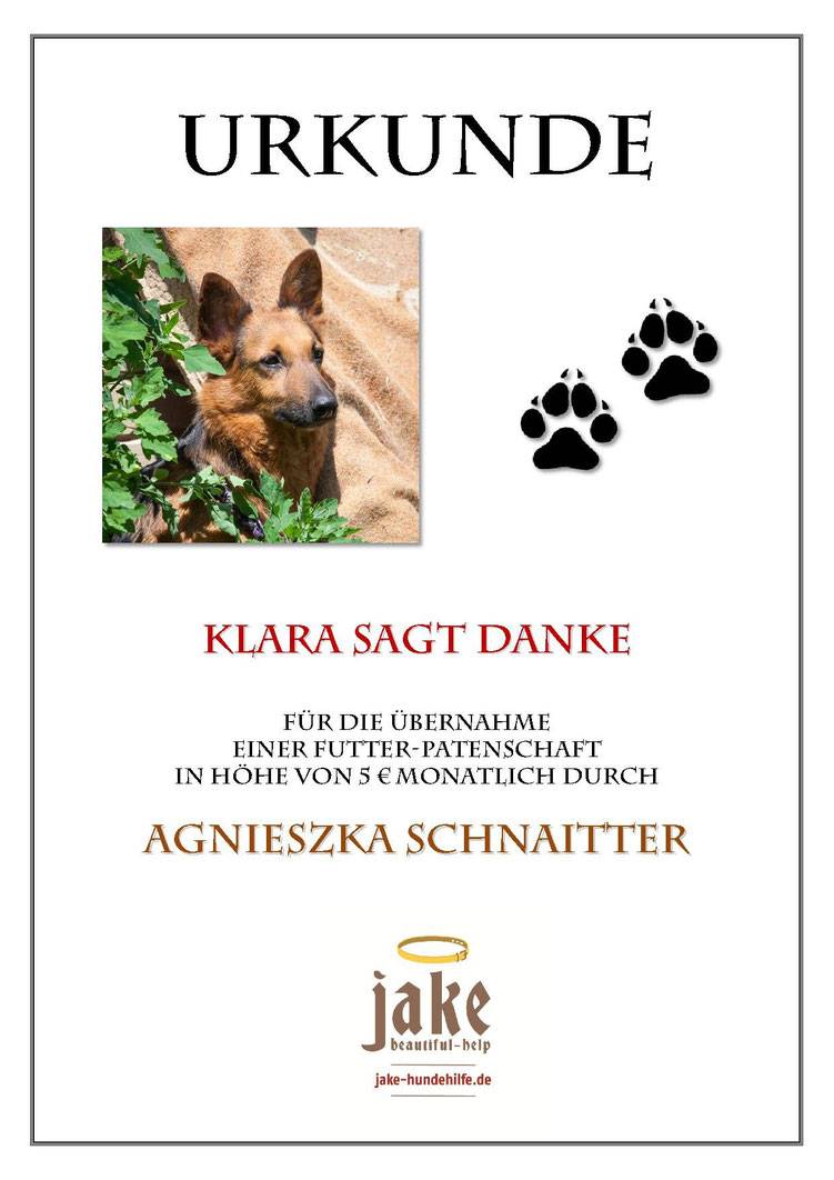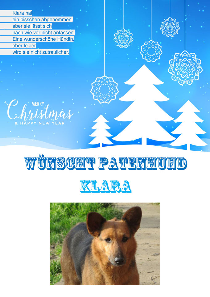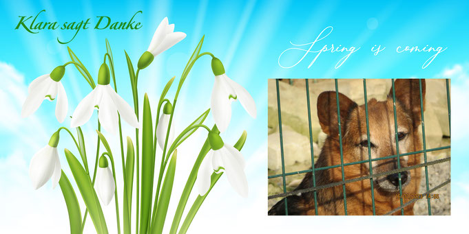 Klara lebte auf einem Fabrikgelände. Dort hat sie immer wieder Junge bekommen und musste lernen, die Menschen zu meiden. Sie muss Schlimmes erlebt haben und es tut im Herzen weh, noch immer die Furcht in ihren Augen zu sehen. Noch immer lässt sie sich nicht streicheln und zieht sich zurück, wenn jemand sich ihrem Zwinger nähert. Basia und ihre Familie haben ihr gezeigt, dass Menschen auch freundlich sein können und Klara hat gelernt, wenigstens ihren Pflegern zu vertrauen.