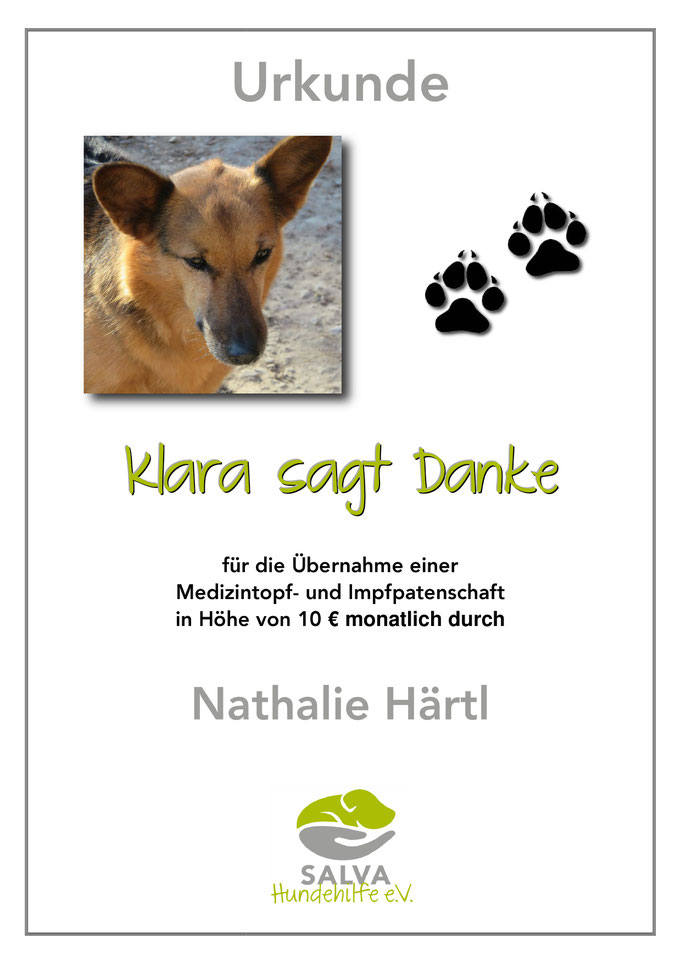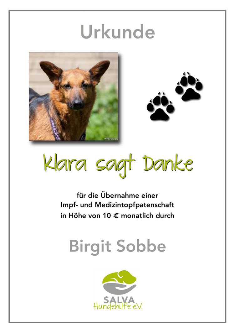 Klara fand im April 2017 ihre Impf- und Medizintopfpatin.