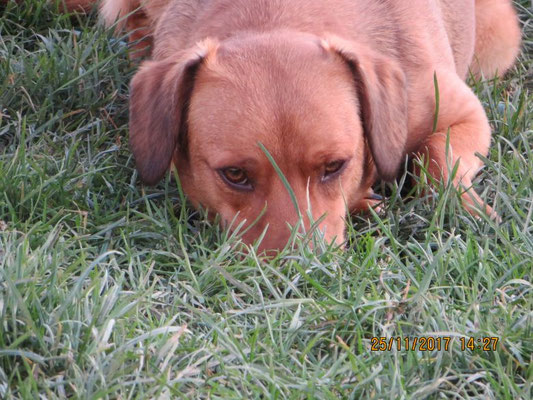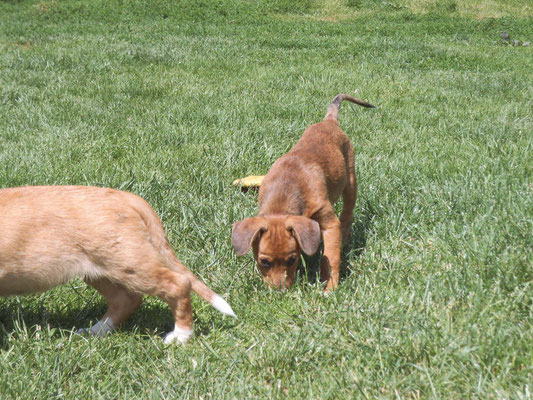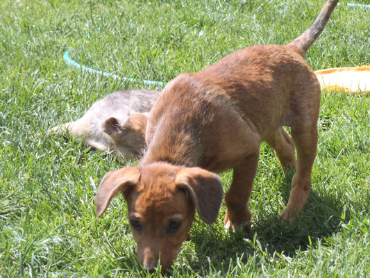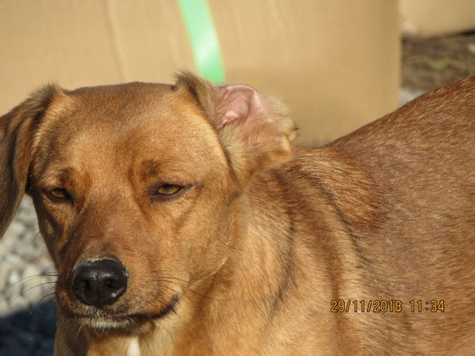 Pusia, die Schwester von Muszka, wiegt derzeit 3kg. Ihr Gesundheitszustand hat sich enorm gebessert, sie hat Appetit und ist ein fröhlicher Hund. Allmählich fasst sie Vertrauen.
