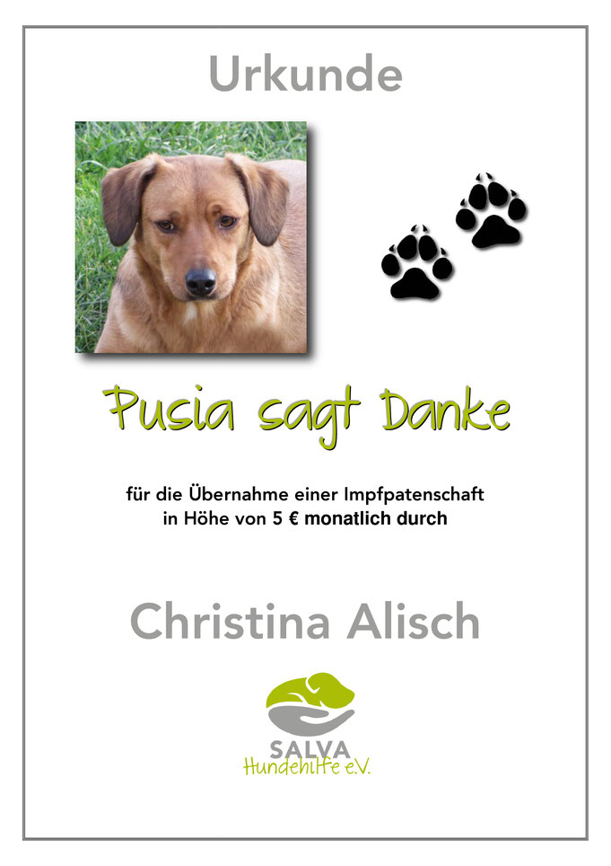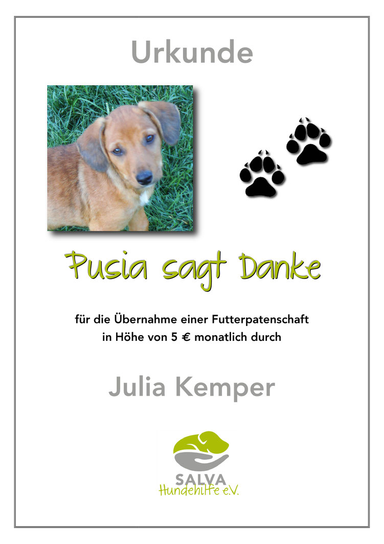 Im Juni 2016 fand Pusia ihre Futterpatin.