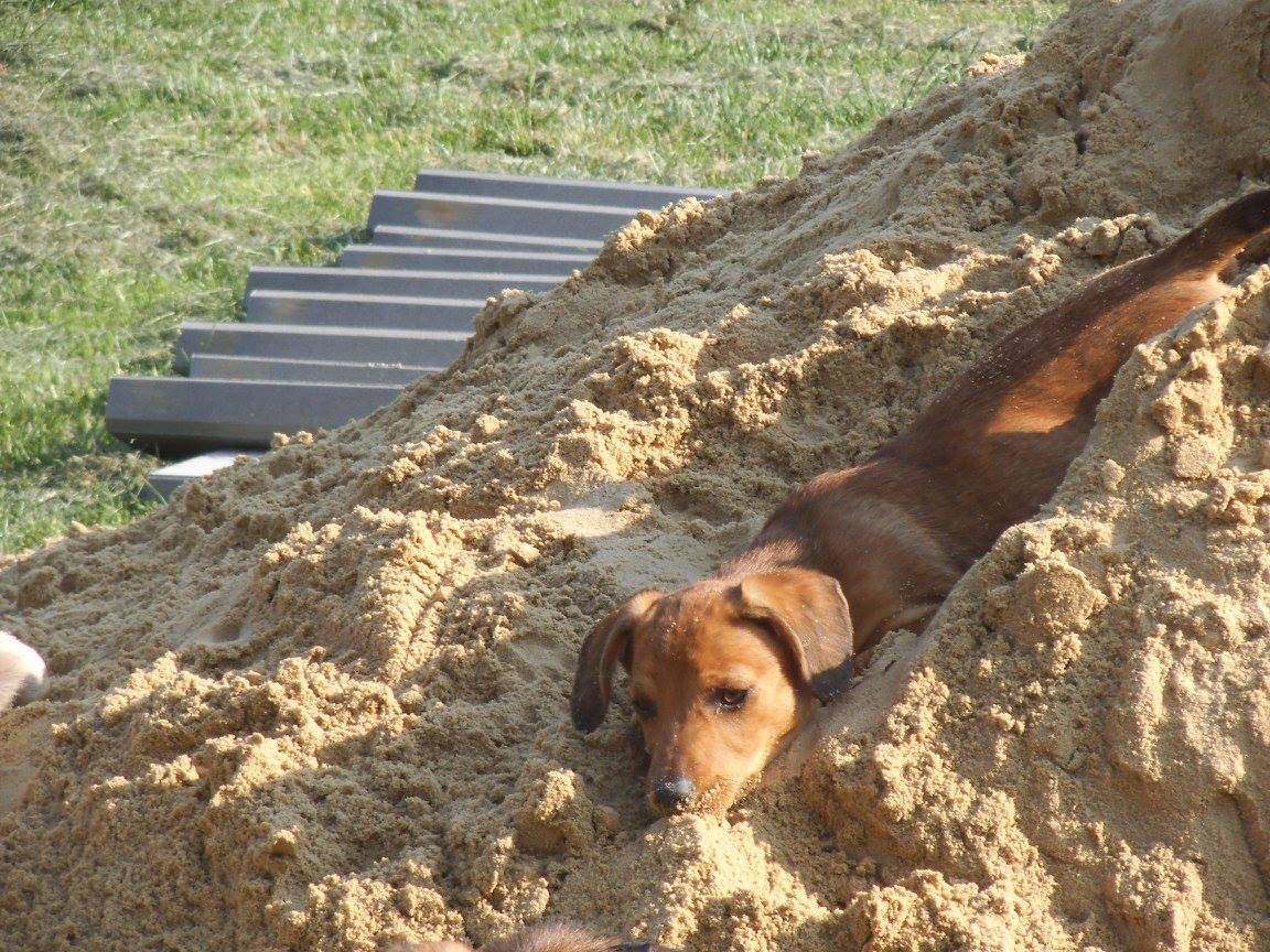 Pusia und ihre Freunde Dusia und Muszka helfen eifrig beim Bau des Wasseranschlusses.