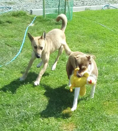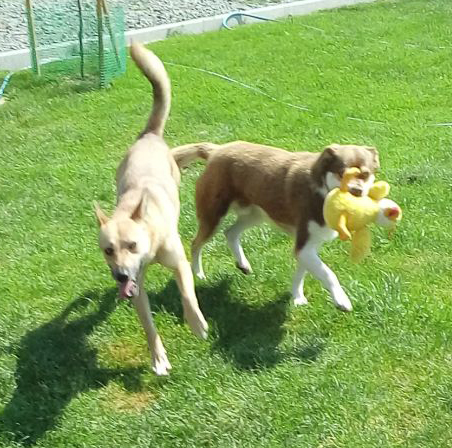 Sonia, voller Energie, freundlich und stets in Bewegung, ist nun sterilisiert und wartet weiterhin auf eine neue Familie. Sie ist stubenrein und sehr artig in ihrer Box. Sie liebt es mit Szogun zu spielen.