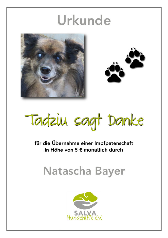 Seit Oktober 2020 ist Tadziu mit einer Impfpatenschaft versorgt.