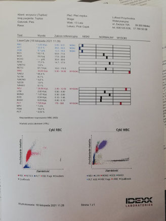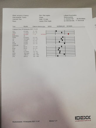 Er wurde dem Tierarzt vorgestellt, geimpft, entwurmt, gechipt und kastriert. Ein Bluttest ergab schlechte Nierenwerte, eine Anämie sowie hohe Entzündungswerte.