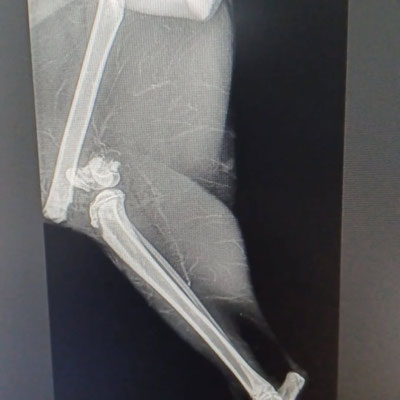Die Operation ist gut verlaufen. Ein Bein war in drei Teile gebrochen, das andere in elf. Letzteres wird höchstwahrscheinlich ihre Gehfähigkeit beeinträchtigen.