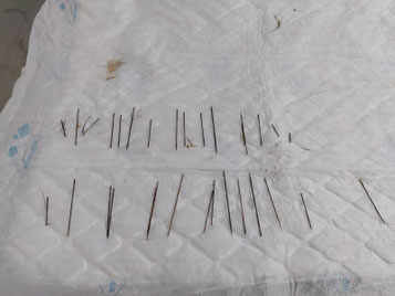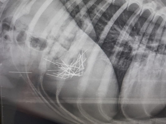 In einer aufwändigen Notoperation, für die ein Spezialist hinzugezogen wurde, konnten 31 Nadeln erfolgreich entfernt werden. Die Kosten von 700 € bezahlte Pamela aus eigener Tasche, da der