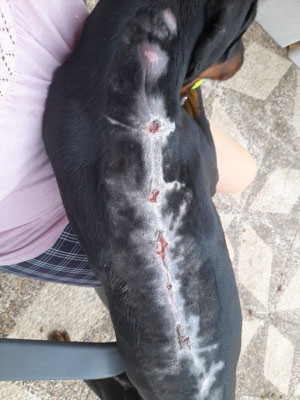 Seine Genesung erfordert nun tägliche Wundreinigung und Desinfektion sowie eine spezielle medizinische Salbenbehandlung. Um ihm helfen zu können, fehlt es TAC momentan an finanziellen Mitteln,