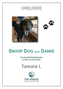 eingegangen sind – insgesamt können wir 2040 € für Snoop Dogs medizinische Versorgung an den spanischen Tierschutzverein The Animal Collective weiterleiten. Dafür ein
