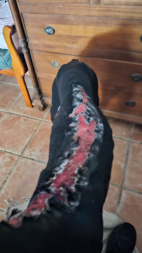 durch Verätzungen geschädigte Haut heilt ausgezeichnet, und sogar die Kastration konnte bereits durchgeführt werden.