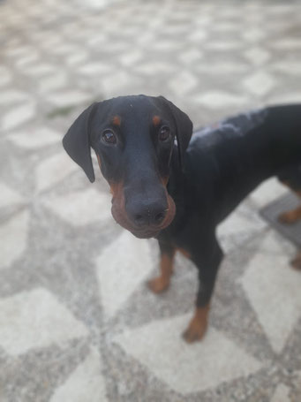 Gestern wurde ein junger Dobermann in einem erschütternden Zustand von einer Passantin auf Spaniens Straßen entdeckt.