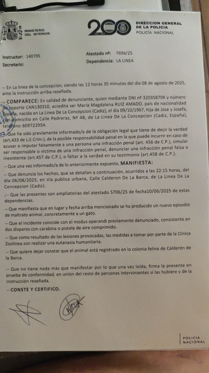 Leider ist das Schießen mit Luftgewehren auf wehrlose Tiere in Spanien – selbst mitten in der Stadt – für manche eine Art makaberer Zeitvertreib. Ein Verhalten, das nicht nur grausam, sondern auch strafbar ist. Jeder einzelne Fall muss ernst genommen und konsequent verfolgt werden.