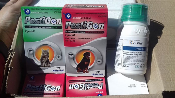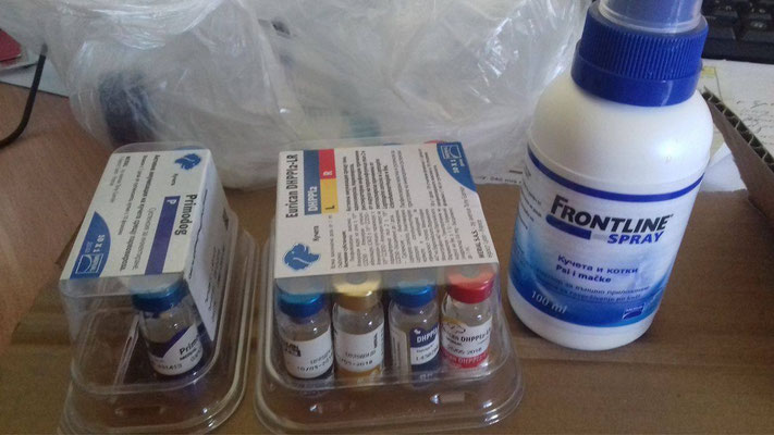 Ein hartes Stück Arbeit, das gesamte Gelände und Haus mit dem Flohmittel zu besprühen und allen Tiere das Flohmittel zu verabreichen. Auch die Katzen wurden in die Behandlung einbezogen.