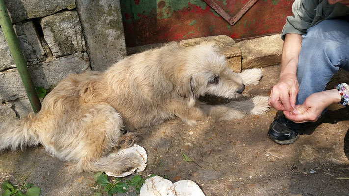 Eine alte Frau, die in einem 40 km entfernten Dorf eine private Auffangstation betreibt, war an Krebs erkrankt und benötigte nun dringend Unterstützung bei der Versorgung ihrer rund 40 Hunde und 12 Katzen.