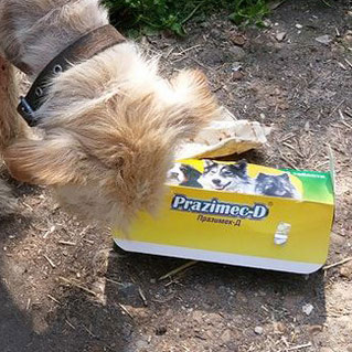 Auch wenn vor zwei Monaten die Flohinvasion erfolgreich bekämpft werden konnte, enthält das verwendete Entwurmungsmittel präventiv auch einen Wirkstoff gegen Flöhe, um einem erneuten Befall vorzubeugen.