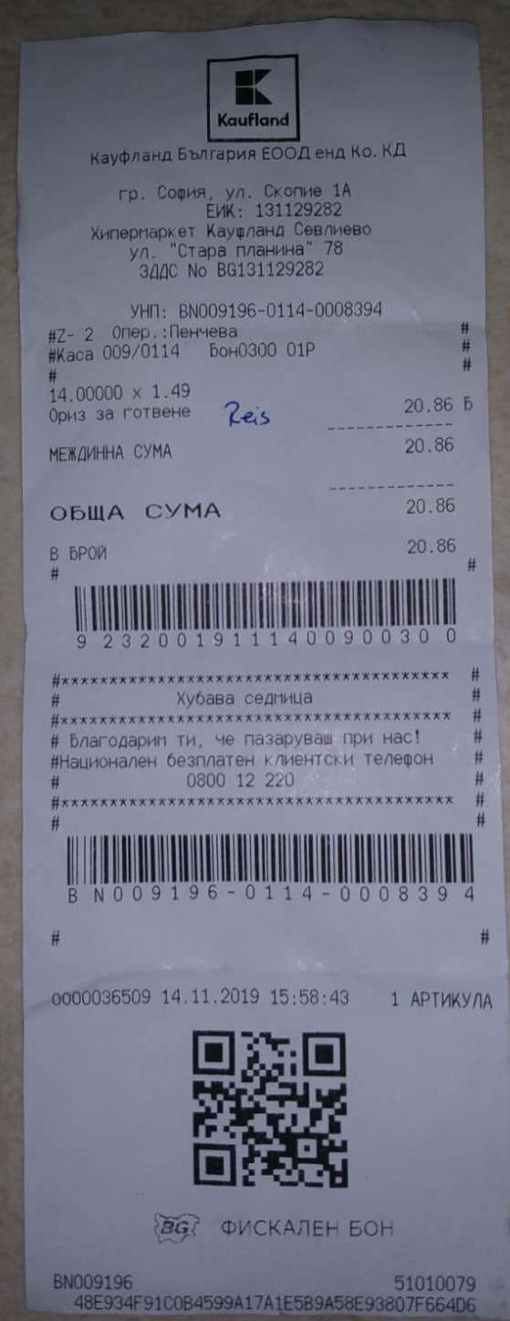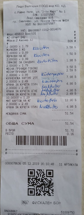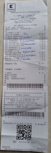 Einkauf vom 11. Februar 2020