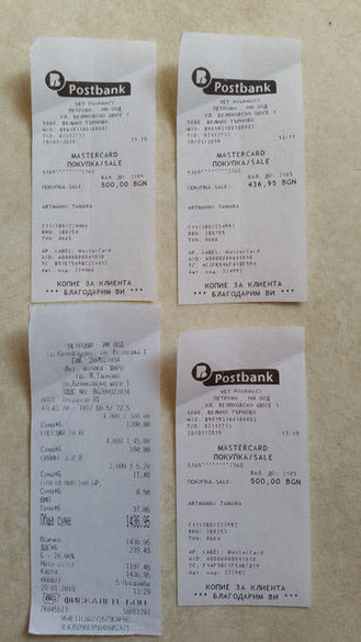 Quittung über vier Flugboxen, 20 kg Trockenfutter, Katzenstreu und Spot on-Ampullen nebst Kreditkartenzahlungsbelegen