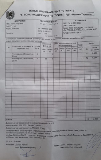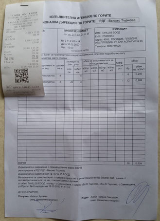Lieferschein und Zahlungsbeleg über Holz und Rindenmulch vom 16. Mai 2020